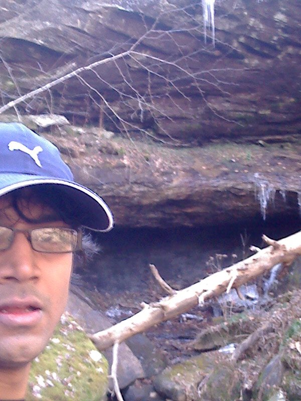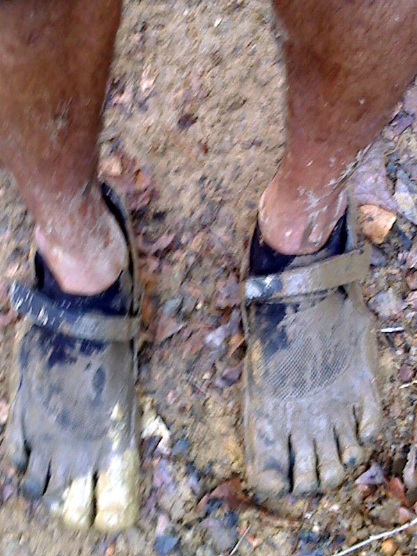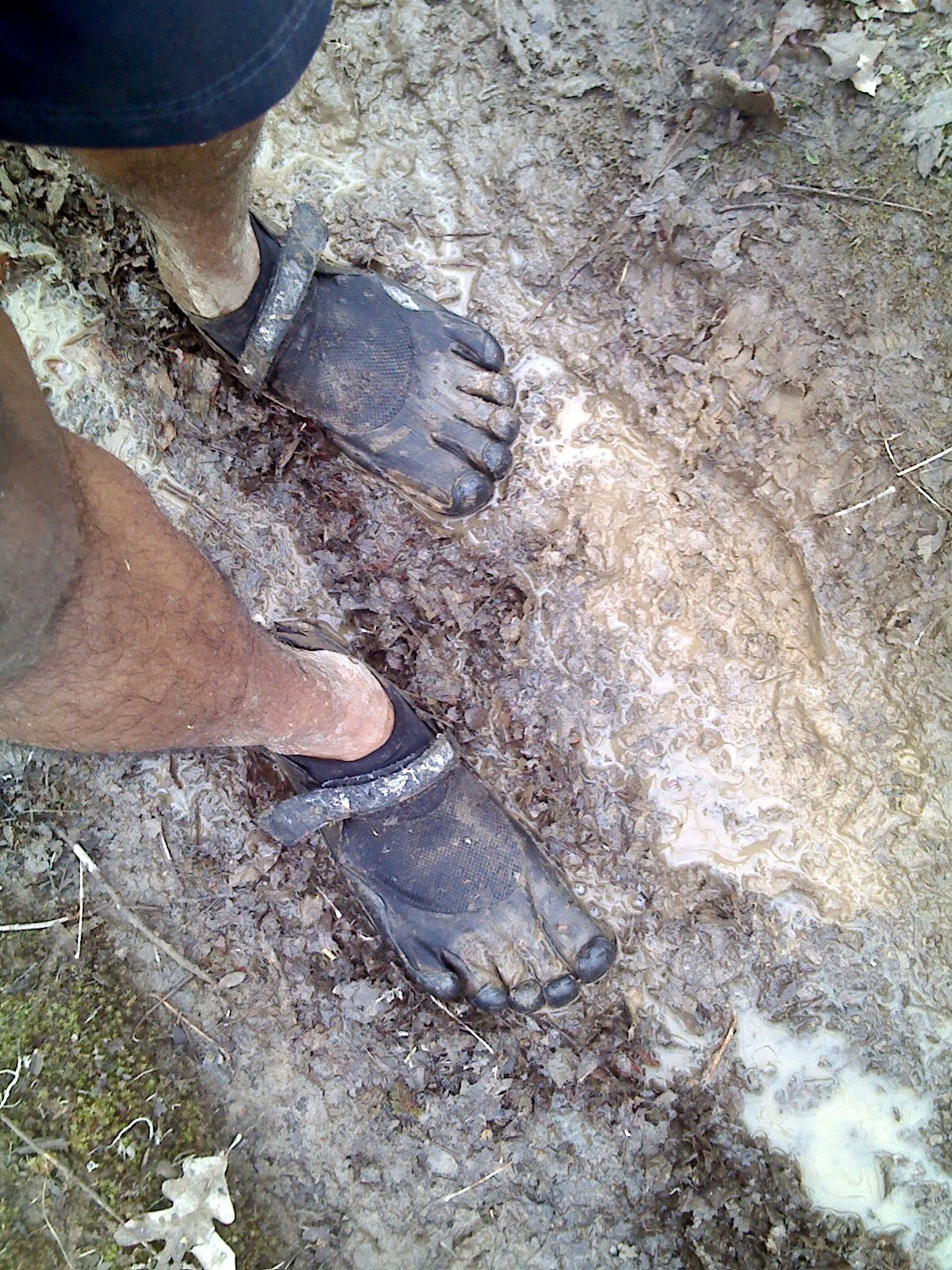 Slushy mud as soon as we hit the trails. While some runners were trying to avoid getting their shoes wet by going around the trail, I had no problems running through them in my Five Fingers. It looked medieval. A primal feel. I loved it. Reached a small waterfall and I could see icicles.