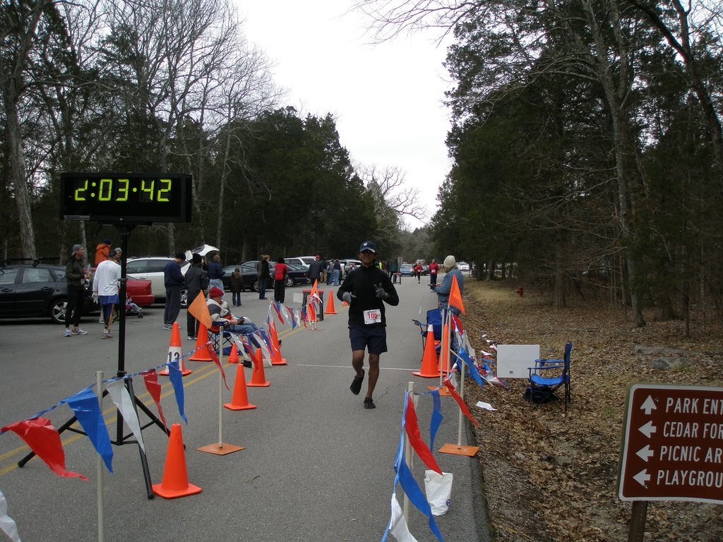 Got picked up by Diane at 9:45am and we headed to Cedars of Lebanon. A beautiful state park located at Lebanon, TN.  It was cold, very cold. We saw Keith warming up on our way to the parking lot.. Met Kim and Amanda, friends of Diane, and two awesome runners. After a brief conversation, we collected our BIB. My first Half-Marathon. Couple of folks wished me for my first half marathon and was asking me to run a full marathon soon. They gave me weird look when I told them that I have completed two full marathons already. 🙂