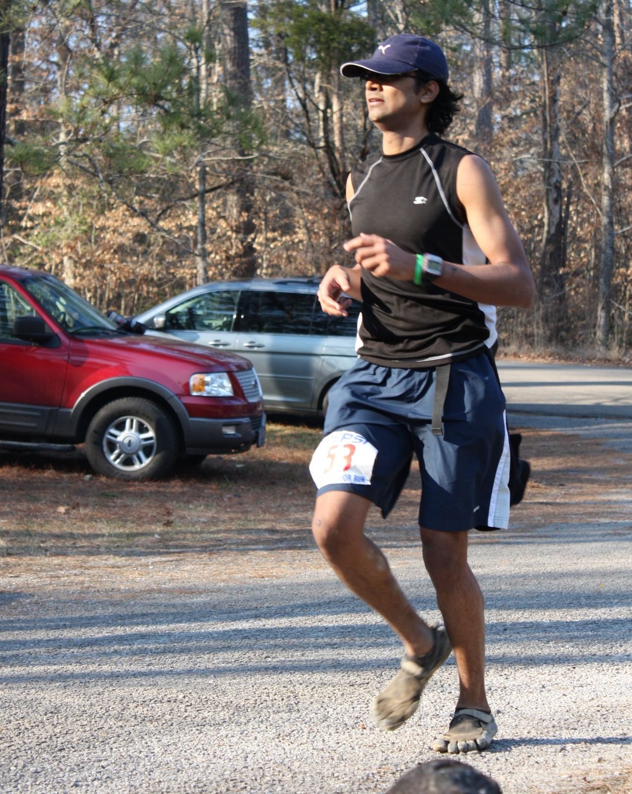It was time. I was excited about running this one in my VFF. This would be the longest run on my VFF ever since I got them. The course was ‘relatively’ hilly and pretty much asphalt/gravel all the way. The race started on time and off we took off from the start line. Met a couple of folks from the ‘Flying Monkey’ marathon at the start line. They are everywhere. Again my VFF attracted lot of runner and were shooting questions at me. My answer was simple, ‘It’s great, my foot feels good, and you should give it a try’. I was feeling good running in them.