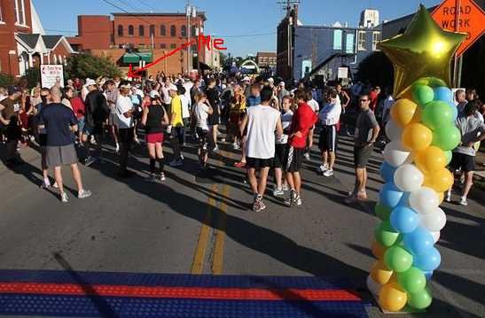 The packet pick went smooth and the T Shirt was gorgeous. There was no orange tag or champion chip this time though. The sensor was embedded in the BIB itself. Race timings are getting very technical. Wonder how it will be down the lane. Caught up with Josh (The evil RD who put up the Blister in the Sun marathon), Chris Estes, Joshua Holmes and Kim. There were many half marathoners than marathoners. My goal was to do better than Tupelo though.