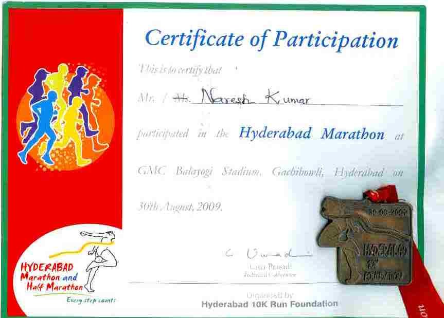 I am in Maryland, US now on business. I don’t know what I was thinking when Ram asked me to register for Hyderabad marathon on 31st August 2009. A full marathon. If all goes well, it’ll be my first Marathon, a dream come true. I could imagine how great it would be to cross the finish line. I will be returning on the 17th Aug, so I have some time at hand to catch up with training. With the same excitement, I logged into the website to register and again I don’t what I was thinking when I registered myself for the Full Marathon. Though I ran two races, 12.1 miles and 7 miles race, trail running while in US, that’s no were close to 26.2 miles.