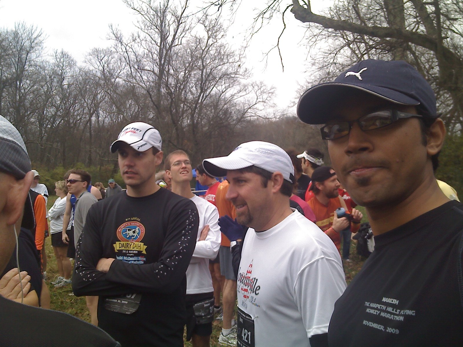 Took a couple of stops at rest area and also caught Subha on our way.  After about three hours of drive we reached the race spot. There was lot of runners already running around, stretching and warming up. While the others went to pick up their T-Shirt, I was roaming around looking at the ‘Trail of Tears’ visitor center (The history behind the name was very painful). After  getting out of the visitor center I stepped out to warm-up and there were lots of folks giving weird looks at my VFF. I don’t blame them though. I was acting like I was the ambassador for VFF explaining about the shoe. Just hoping that it doesn’t hurt during the race. While everyone took off at the start line I decided to run slow along with Subha and Harish.