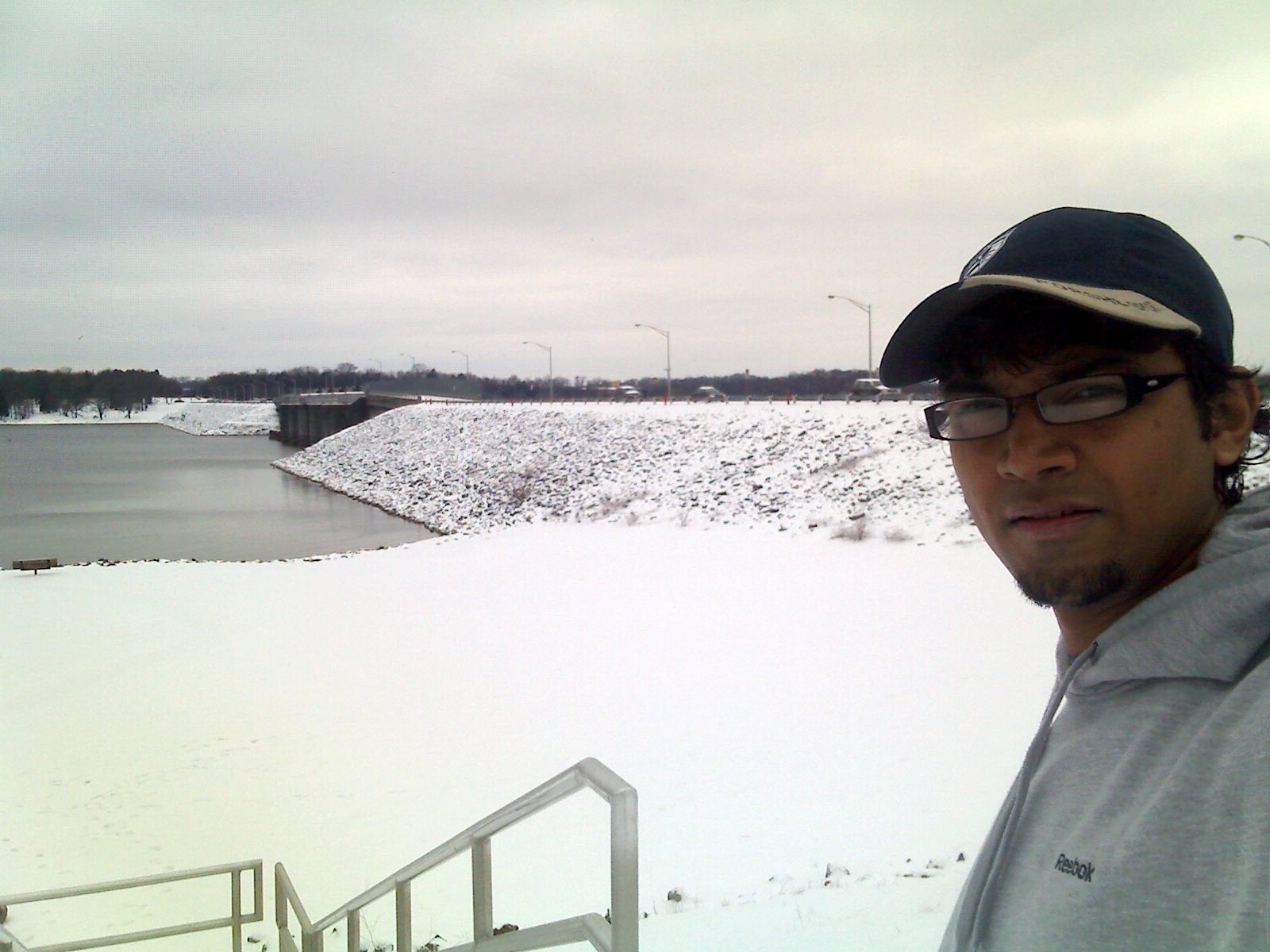 I reached the dam and stopped for a while to catch some breath. Man, it was really cold though It felt very good to be out in the snow. There were lots of people outside that I expected. Many stopped by to click pictures by the dam.