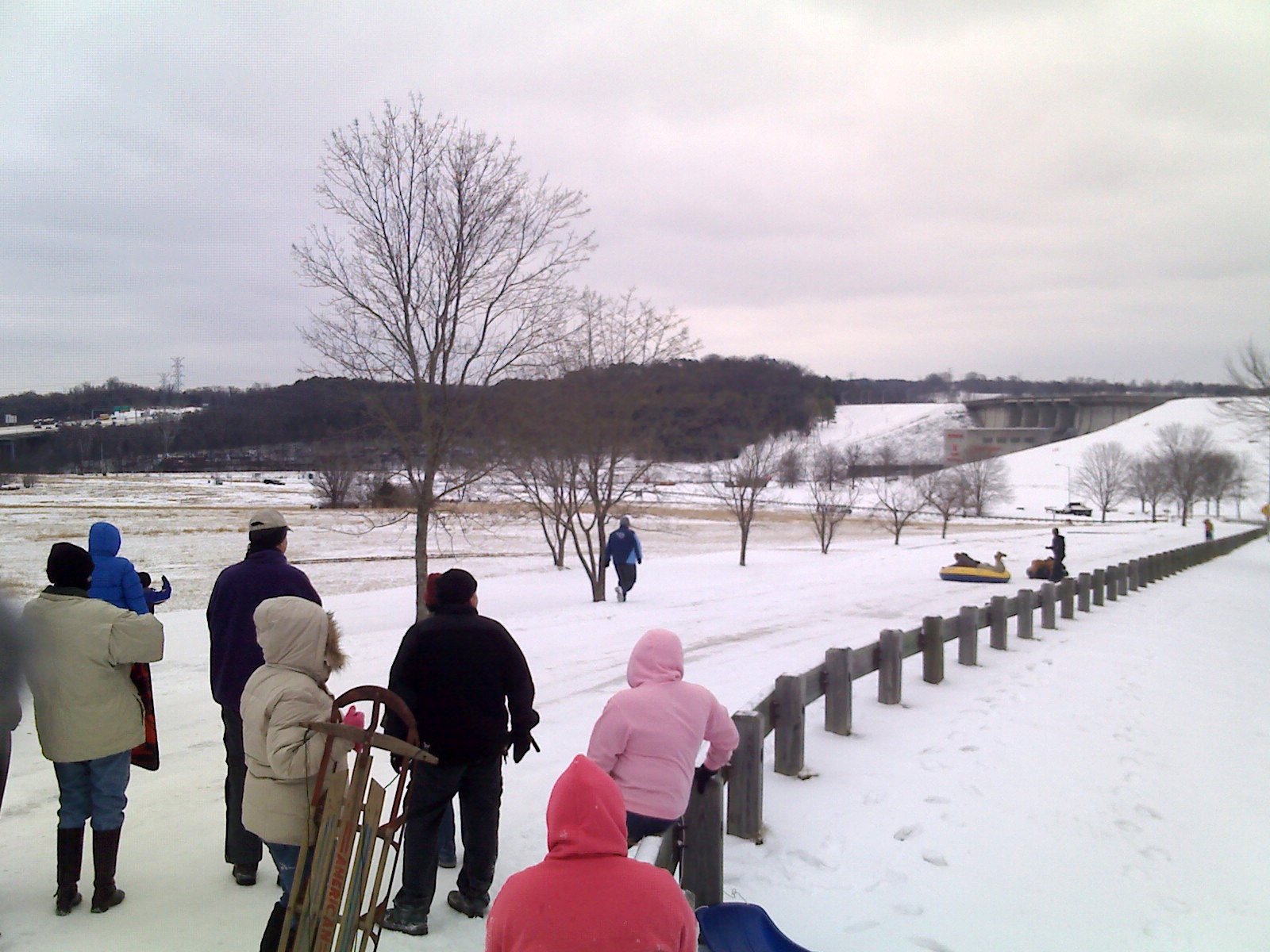 Ran further down the road for half hour and got back to where the dam’s gate opens up. There were lot more people down there having fun snow tubing down the frozen road. They were using inflated tubes, planks, packaging box and anything they could get their hands on to snow tube down the road. It was fun watching them. Wish I had one with me, anyhow I decided to turn back.